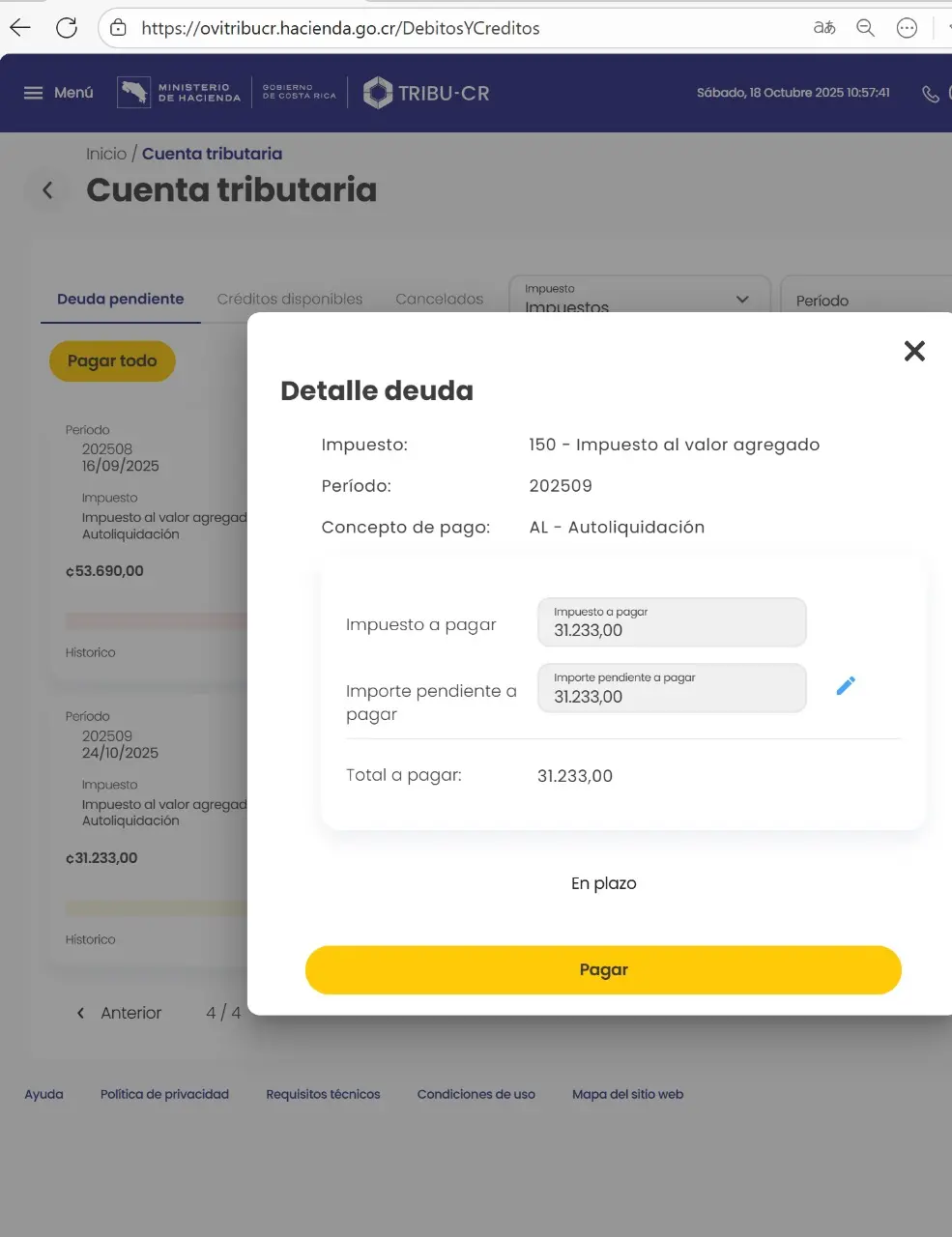 3- Revisar si el impuesto está bien y proceder a pagar.